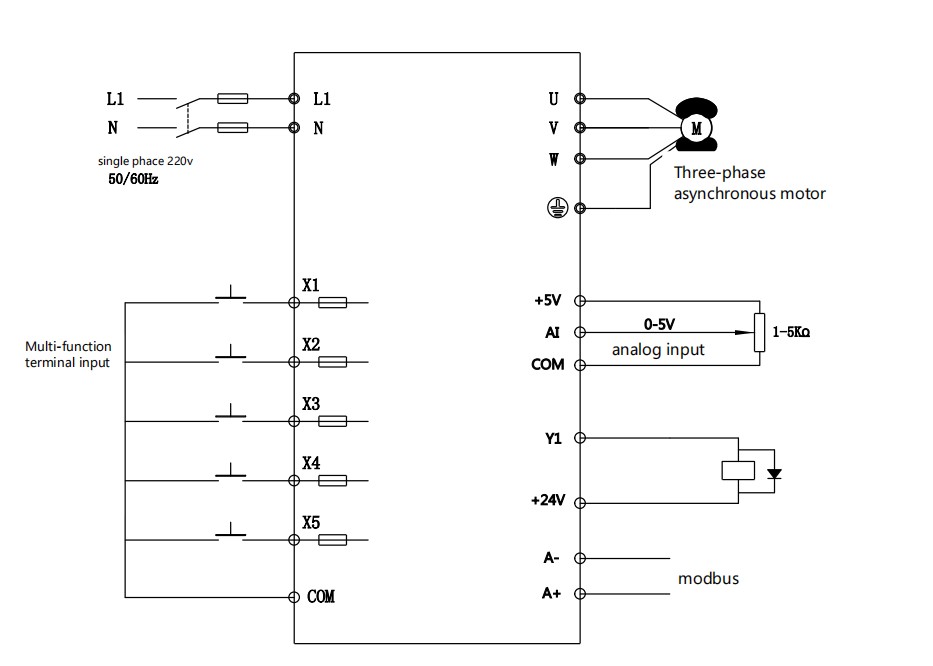 VT100 series inverter is a simple and smart inverter, which performs V/F control on AC asynchronous motors, and is suitable for simple places such as assembly lines and fans. This manual introduces the configuration functions and usage methods of VT100 series inverters.
