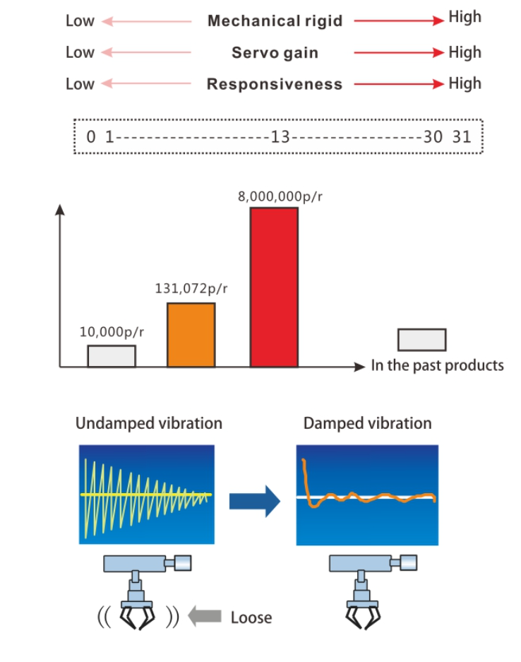 1. It is easier to debug the parameters. Parameters It does not need to set the gain of position ring and speed ring, but only need to set the rigidity real-time automatic gain through the parameter Pr003.