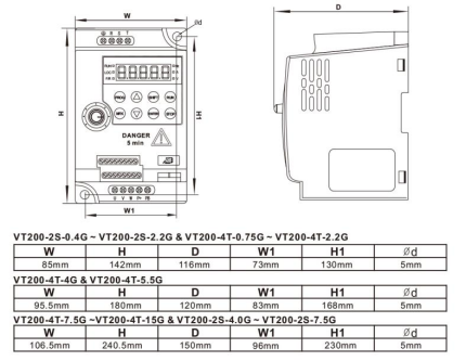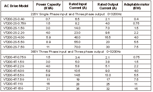 VT200 Series Mini Type AC Drive are developed for general applications of small power and OEM market. It applies SVC and V/F control technology, making the functions of PID, multiple-speed step, DC braking(optional), Modbus communication, as well as less installation space .VT200 Series AC drive is for small automation equipment of economical type, especially suitable for electronic equipment, food packaging, wood, glass and other small power transmission.