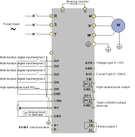 AOV:0-10V、AOI:0-20mA, 4~20mA can be output through parameter setting |