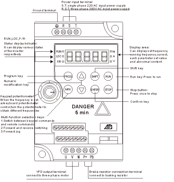 RJ45 terminal can connecte with an external keyboard, and can adjust speed or monitor or control parameters with external keyboard |